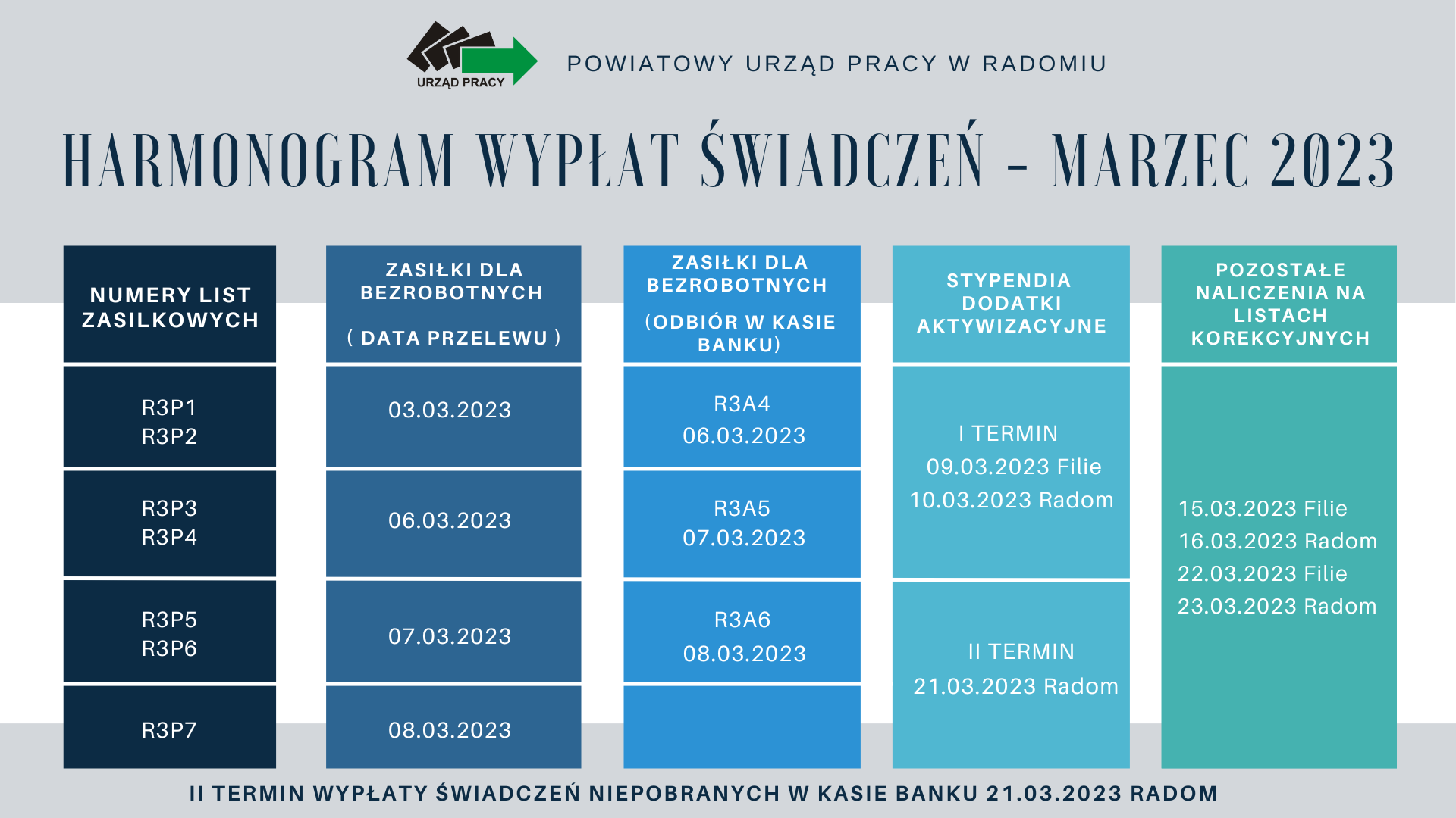 Osoby przypisane do list od R3A4 do R3A6 mogą odbierać świadczenia w terminach zamieszczonych w harmonogramie wypłat.