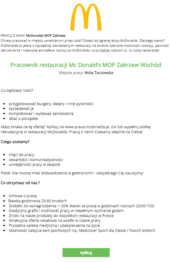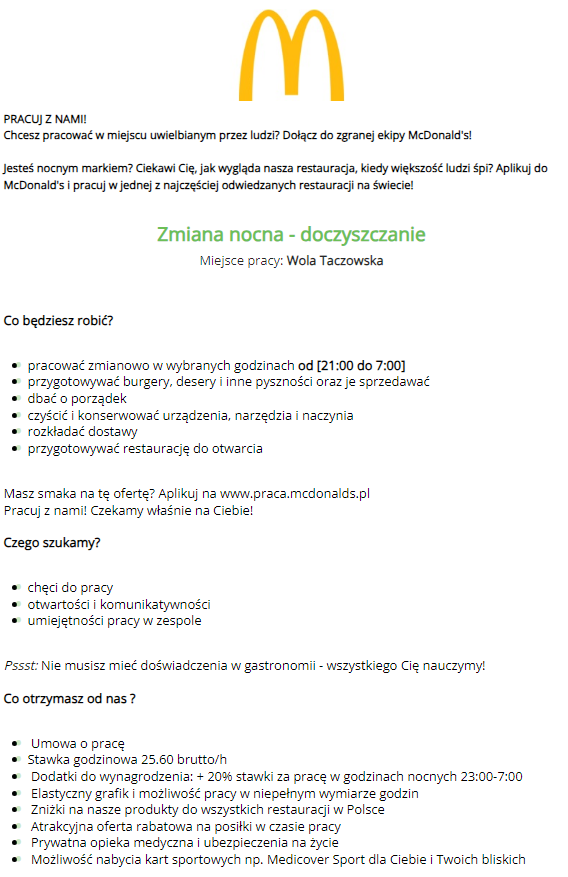 Restauracja Mc Donald's szuka: