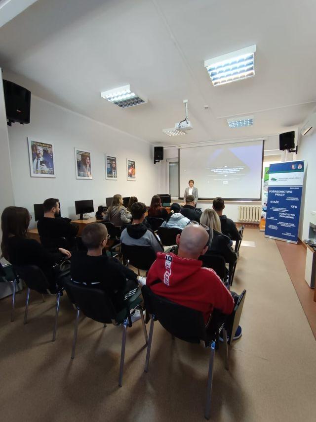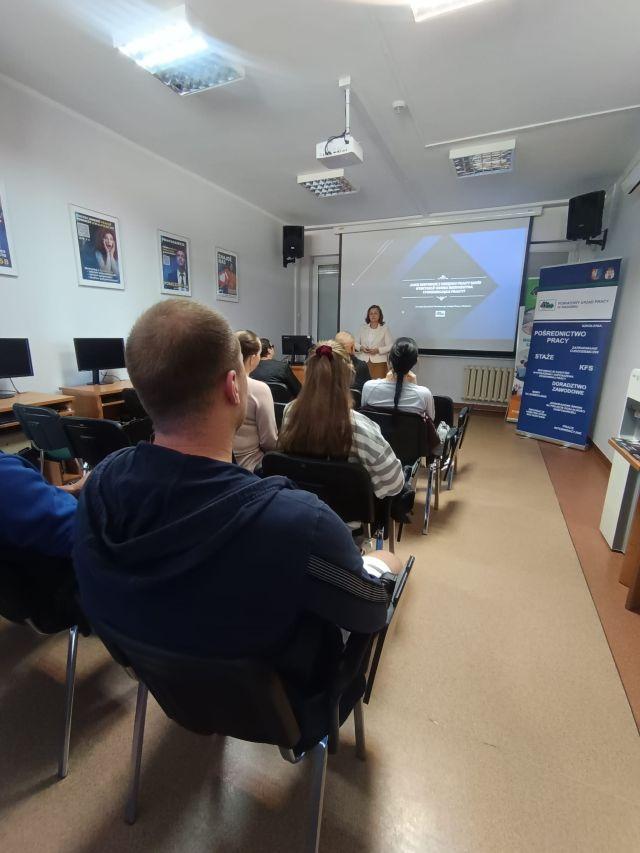 Uczestnicy poznali też konkretne formy wsparcia oferowane przez urząd, takie jak zatrudnienie subsydiowane, bony szkoleniowe, prace interwencyjne czy refundacje kosztów doposażenia stanowisk pracy.